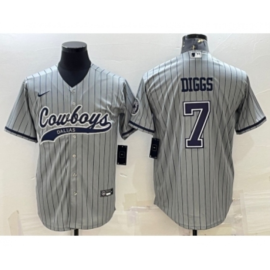 >Men's Dallas Cowboys #7 Trevon Diggs Grey With Patch Cool Base Stitched Baseball Jersey