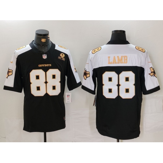 Men's Dallas Cowboys #88 CeeDee Lamb Blue Gold Name Thanksgiving FUSE Vapor Limited Stitched Jersey