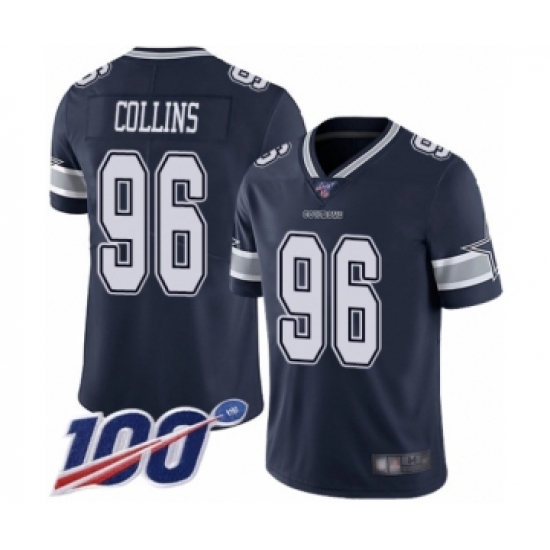 >Men's Dallas Cowboys #96 Maliek Collins Navy Blue Team Color Vapor Untouchable Limited Player 100th Season Football Jersey