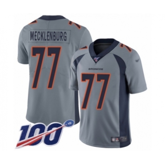 Men's Denver Broncos #77 Karl Mecklenburg Limited Silver Inverted Legend 100th Season Football Jersey