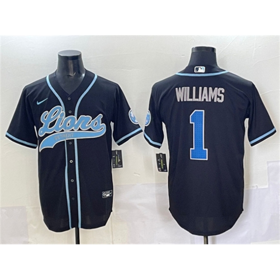 Men's Detroit Lions #1 Jameson Williams Black Stitched Baseball Jersey