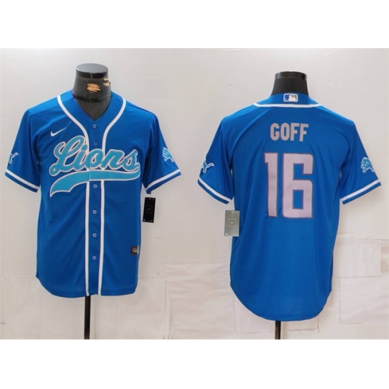 Men's Detroit Lions #16 Jared Goff Blue Cool Base Stitched Baseball Jersey
