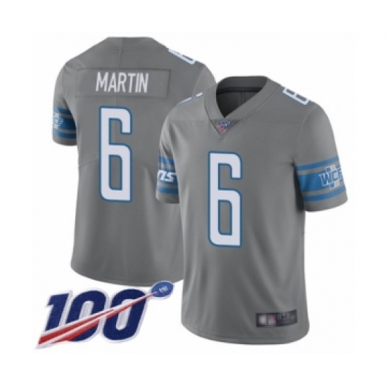 >Men's Detroit Lions #6 Sam Martin Limited Steel Rush Vapor Untouchable 100th Season Football Jersey