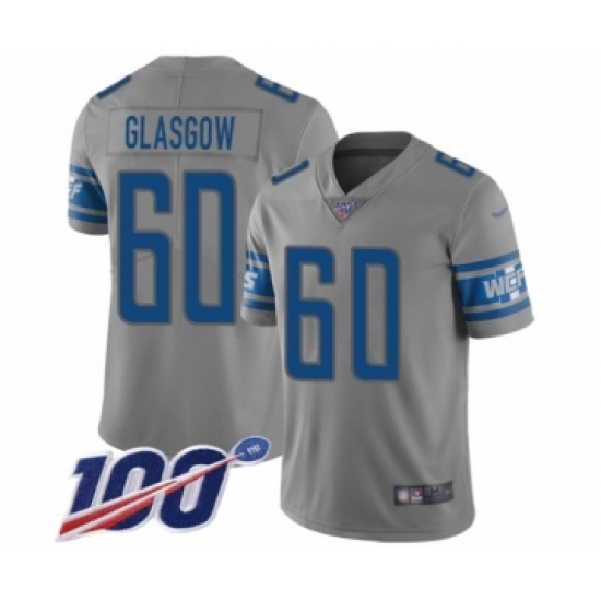 Men's Detroit Lions #60 Graham Glasgow Limited Gray Inverted Legend 100th Season Football Jersey