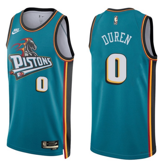 Men's Detroit Pistons #0 Jalen Duren Teal Stitched Basketball Jersey