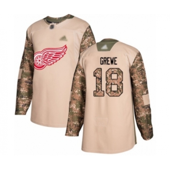 >Men's Detroit Red Wings #18 Albin Grewe Authentic Camo Veterans Day Practice Hockey Jersey