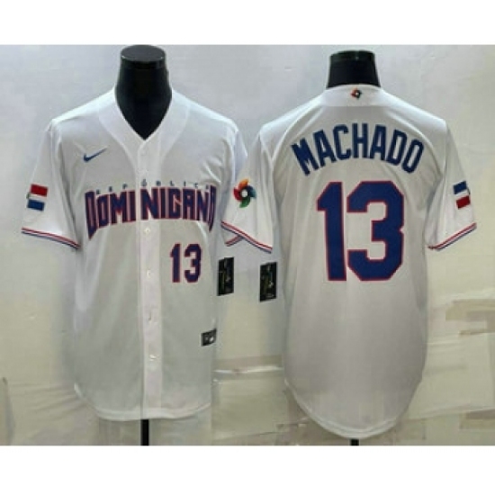 Men's Dominican Republic Baseball #13 Manny Machado Number 2023 White World Baseball Classic Stitched Jersey