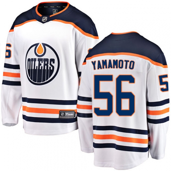 Home>NHL>Edmonton Oilers>Kailer Yamamoto>Men's Edmonton Oilers #56 Kailer Yamamoto Fanatics Branded White Away Breakaway NHL Jersey