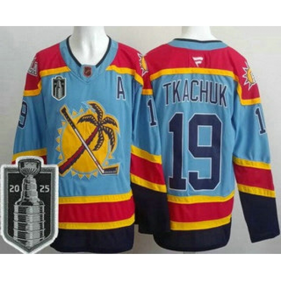 Men's Florida Panthers #19 Matthew Tkachuk Blue 2025 Stanley Cup Final Authentic Jersey