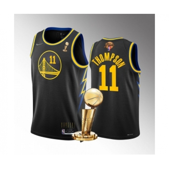 Men's Golden State Warriors #11 Klay Thompson Black 2022 NBA Finals Champions Stitched Jersey