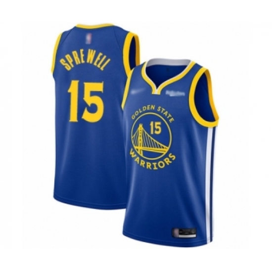 Men's Golden State Warriors #15 Latrell Sprewell Authentic Royal Finished Basketball Jersey - Icon Edition