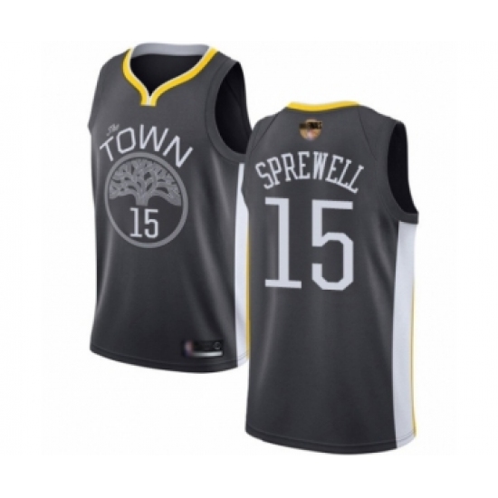 >Men's Golden State Warriors #15 Latrell Sprewell Swingman Black 2019 Basketball Finals Bound Basketball Jersey - Statement Edition