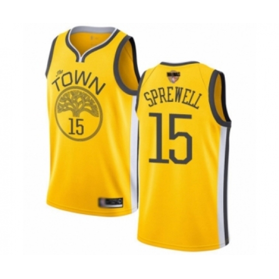 Men's Golden State Warriors #15 Latrell Sprewell Yellow Swingman 2019 Basketball Finals Bound Jersey - Earned Edition