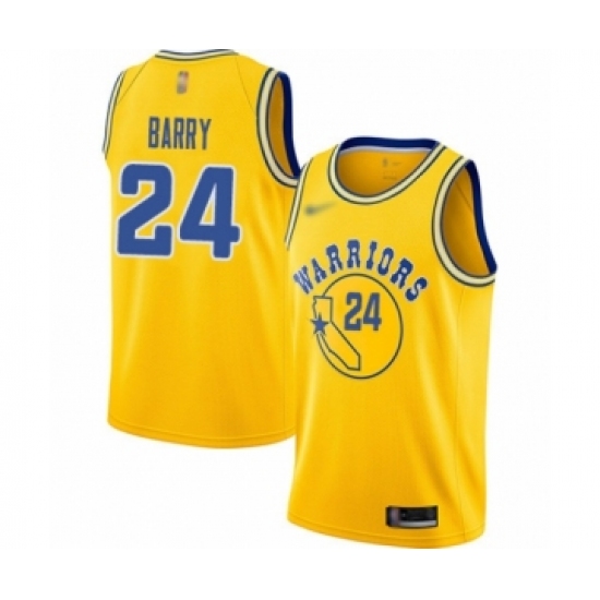 Men's Golden State Warriors #24 Rick Barry Authentic Gold Hardwood Classics Basketball Jersey