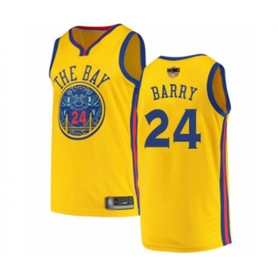 >Men's Golden State Warriors #24 Rick Barry Swingman Gold 2019 Basketball Finals Bound Basketball Jersey - City Edition