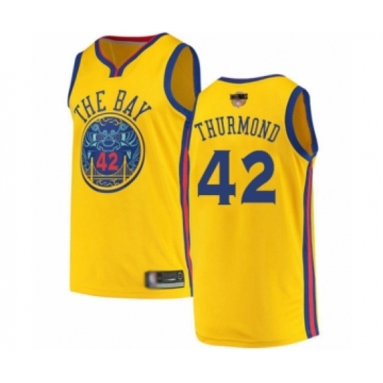 >Men's Golden State Warriors #42 Nate Thurmond Swingman Gold 2019 Basketball Finals Bound Basketball Jersey - City Edition