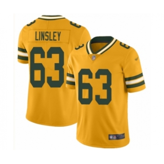 >Men's Green Bay Packers #63 Corey Linsley Limited Gold Inverted Legend Football Jersey