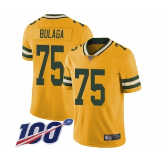 >Men's Green Bay Packers #75 Bryan Bulaga Limited Gold Rush Vapor Untouchable 100th Season Football Jersey