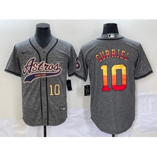 Men's Houston Astros #10 Yuli Gurriel Number Grey Gridiron Cool Base Stitched Baseball Jersey