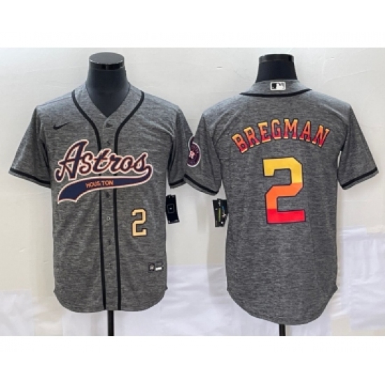 Men's Houston Astros #2 Alex Bregman Number Grey Gridiron Cool Base Stitched Baseball Jersey