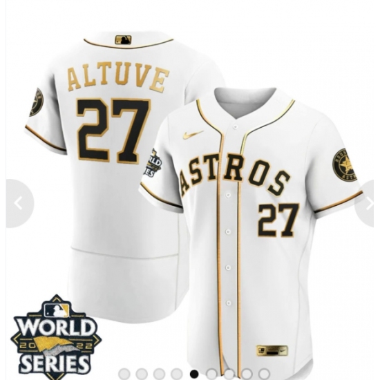 Men's Houston Astros #27 Jose Altuve Number White 2022 World Series patches Jersey
