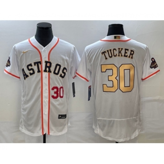 Men's Houston Astros #30 Kyle Tucker Number 2023 White Gold World Serise Champions Flex Base Stitched Jersey2