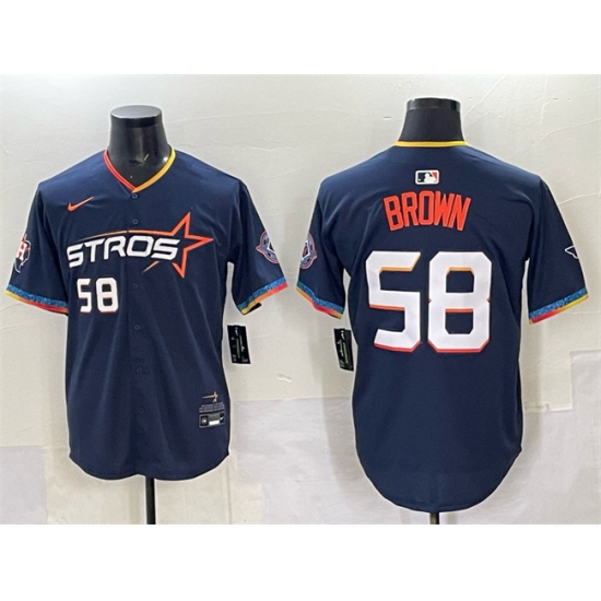 >Men's Houston Astros #58 Hunter Brown Navy 2025 City Connect Limited Stitched Baseball Jersey