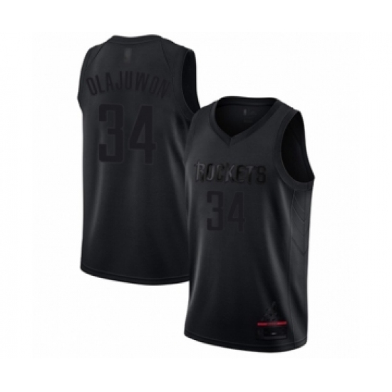 >Men's Houston Rockets #34 Hakeem Olajuwon Swingman Black MVP Basketball Jersey
