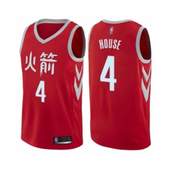 >Men's Houston Rockets #4 Danuel House Authentic Red Basketball Jersey - City Edition