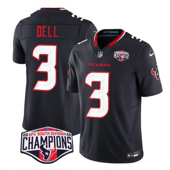 Men's Houston Texans #3 Tank Dell Navy F.U.S.E. 2024 AFC South Division Champions Vapor Limited Stitched Football Jersey