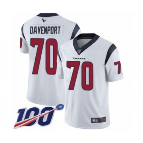 >Men's Houston Texans #70 Julien Davenport White Vapor Untouchable Limited Player 100th Season Football Jersey