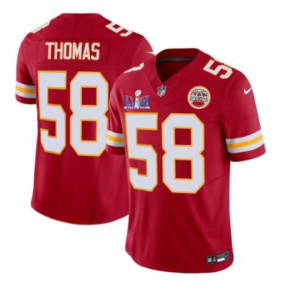 >Men’s Kansas City Chiefs #58 Derrick Thomas Red 2024 F.U.S.E. Super Bowl LVIII Vapor Untouchable Limited Football Stitched Jersey