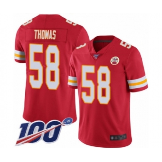 Men's Kansas City Chiefs #58 Derrick Thomas Red Team Color Vapor Untouchable Limited Player 100th Season Football Jersey