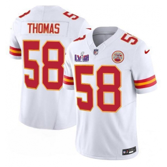 Men’s Kansas City Chiefs #58 Derrick Thomas White 2024 F.U.S.E. Super Bowl LVIII Vapor Untouchable Limited Football Stitched Jersey