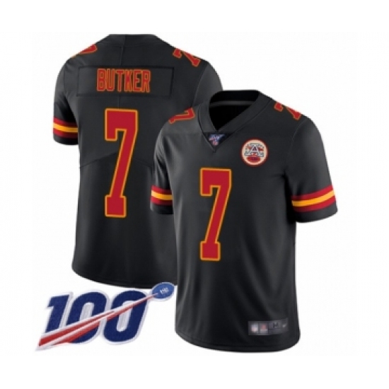 >Men's Kansas City Chiefs #7 Harrison Butker Limited Black Rush Vapor Untouchable 100th Season Football Jersey