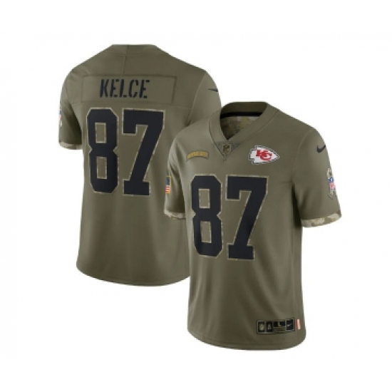 Men's Kansas City Chiefs #87 Travis Kelce 2022 Olive Salute To Service Limited Stitched Jersey