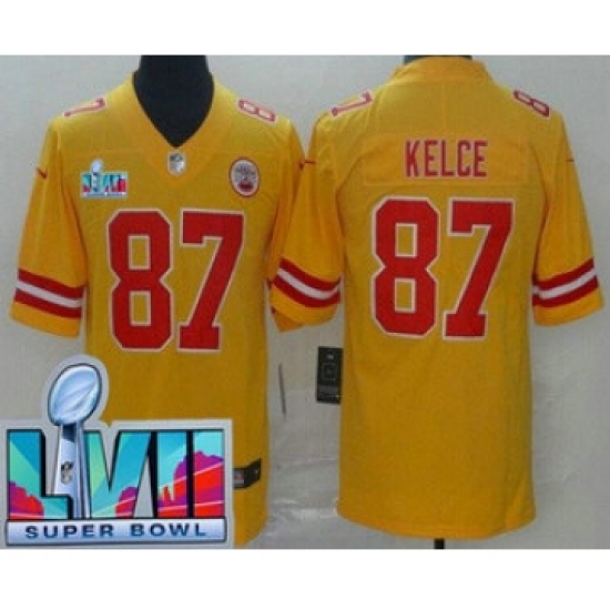 Men's Kansas City Chiefs #87 Travis Kelce Limited Yellow Inverted Super Bowl LVII Vapor Jersey