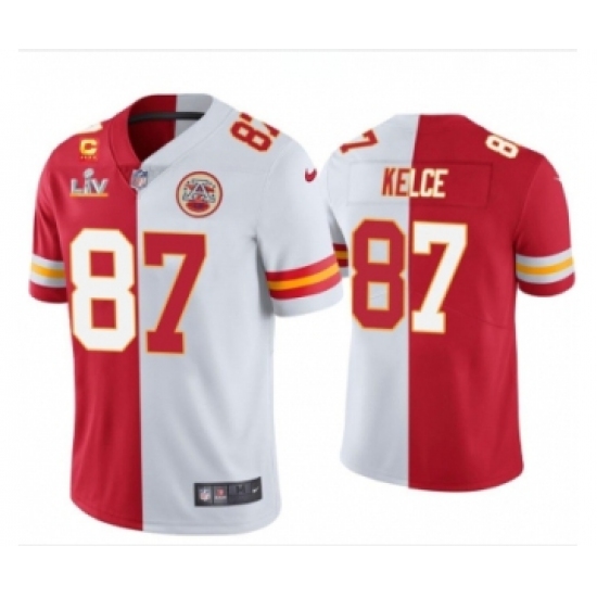 Men's Kansas City Chiefs #87 Travis Kelce Red White Split Vapor Limited 2021 Super Bowl LIV Stitched Jersey