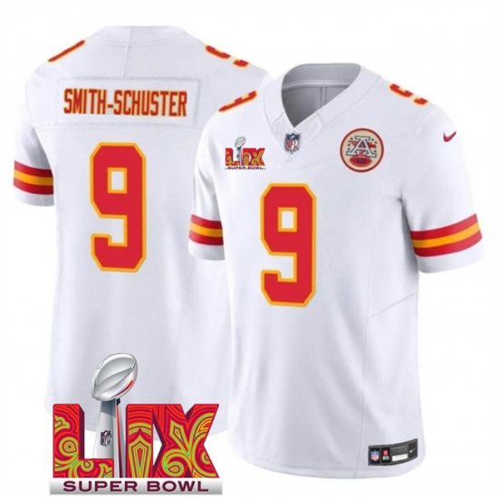 Men's Kansas City Chiefs #9 JuJu Smith-Schuster White 2025 Super Bowl LIX F.U.S.E. Vapor Limited Stitched Football Jersey