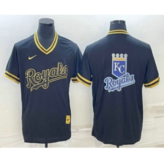 Men's Kansas City Royals Big Logo Black Gold Nike Cooperstown Legend V Neck Jerseys