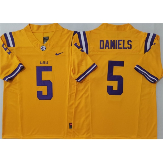 >Men's LSU Tigers #5 Jayden Daniels Yellow F.U.S.E. Stitched Jersey
