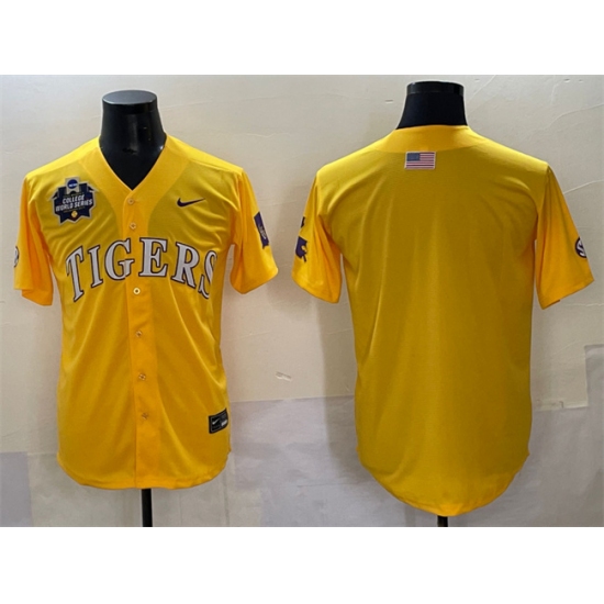 Men's LSU Tigers Blank Gold 2025 World Series & SEC Patch Stitched Baseball Jersey