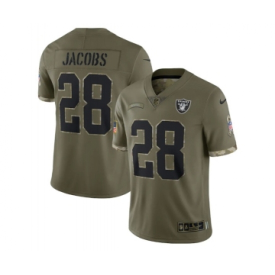 Men's Las Vegas Raiders #28 Josh Jacobs 2022 Olive Salute To Service Limited Stitched Jersey