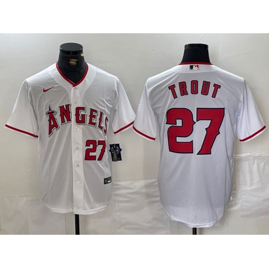 Men's Los Angeles Angels #27 Mike Trout White Cool Base Nike Jersey