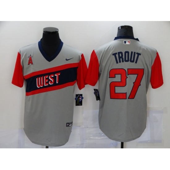 >Men's Los Angeles Angels of Anaheim #27 Mike Trout Grey Flex Base Authentic Jersey