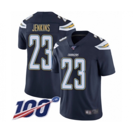 >Men's Los Angeles Chargers #23 Rayshawn Jenkins Navy Blue Team Color Vapor Untouchable Limited Player 100th Season Football Jersey