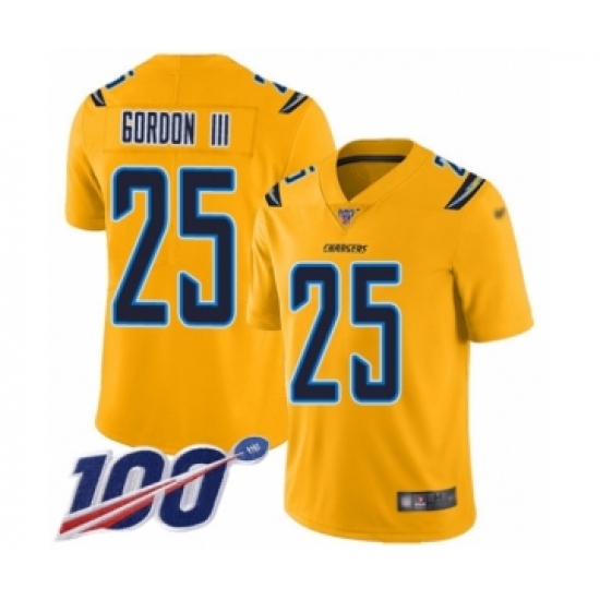 >Men's Los Angeles Chargers #25 Melvin Gordon Limited Gold Inverted Legend 100th Season Football Jersey