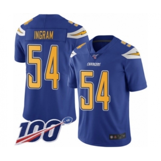 >Men's Los Angeles Chargers #54 Melvin Ingram Limited Electric Blue Rush Vapor Untouchable 100th Season Football Jersey