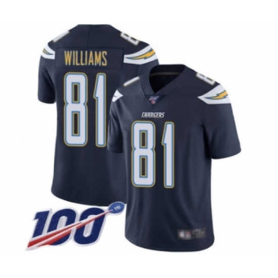 Men's Los Angeles Chargers #81 Mike Williams Navy Blue Team Color Vapor Untouchable Limited Player 100th Season Football Jersey