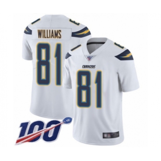 Men's Los Angeles Chargers #81 Mike Williams White Vapor Untouchable Limited Player 100th Season Football Jersey